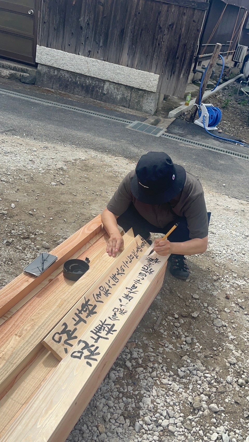 お家と共にずっとそこにあるものになるので、真剣な表情で筆を入れておられました。