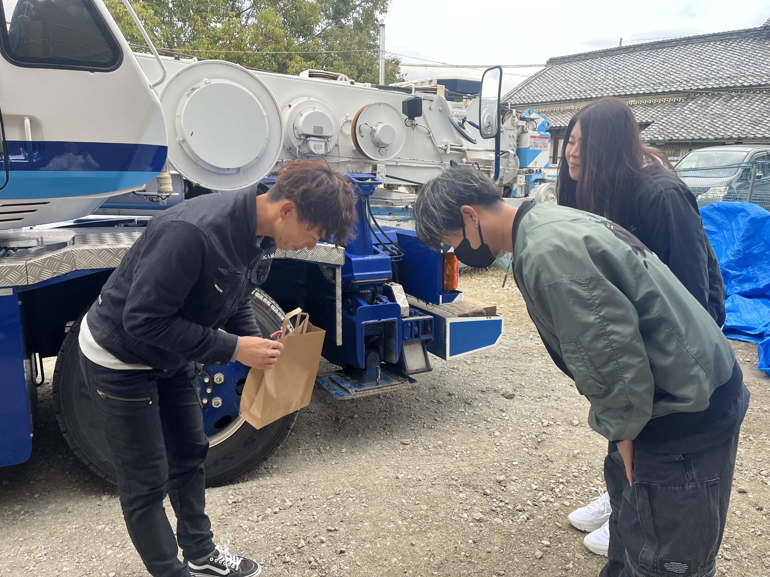 一足早く仕事を終えられたレッカーさんにお礼と手土産の贈呈を頂きました。