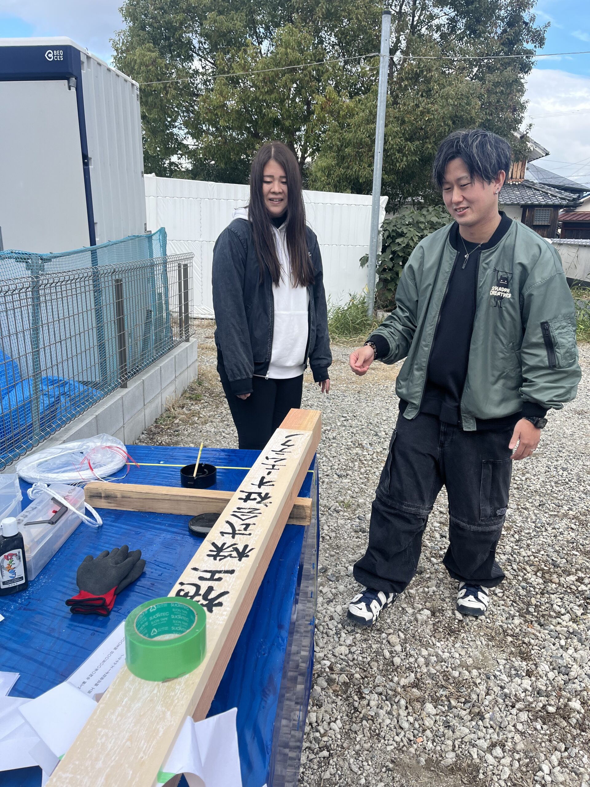 表には施主様のお名前と本日のお日にちを書き上げて頂き、裏面には施工会社の名前を書いて頂きました。