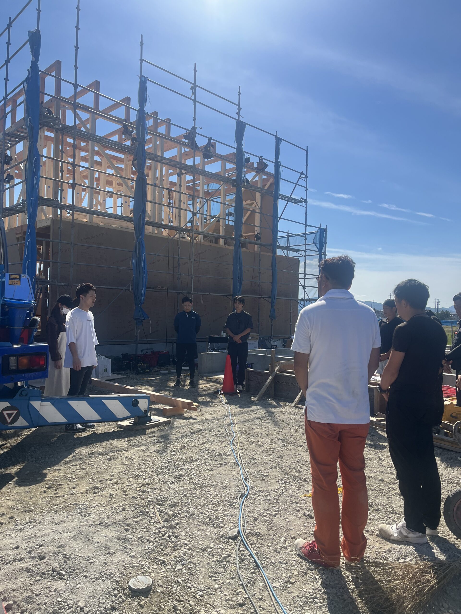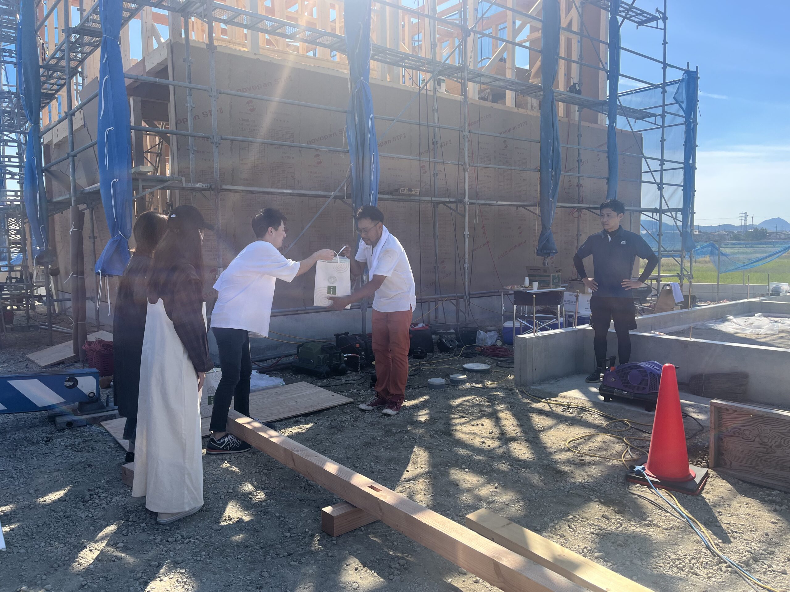 現場のスタッフに対して「体調を1番に優先して作業に当たって欲しい」という優しいお言葉が印象的でした。「新しい命と共にこの家で生活できる日が来るのを楽しみにしています」と頭を下げておられる施主様の姿に大きな拍手が響き渡ります。