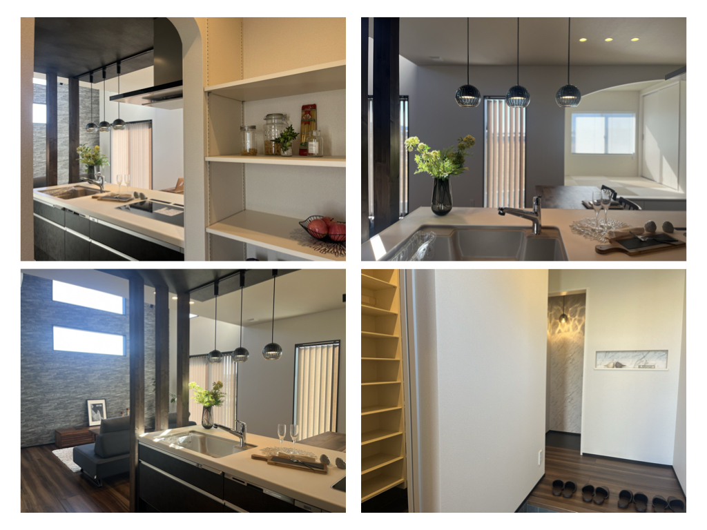 こっくりとした深みのある大人の色使いで落ち着きのあるキッチンダイニングが魅力的なお家です。