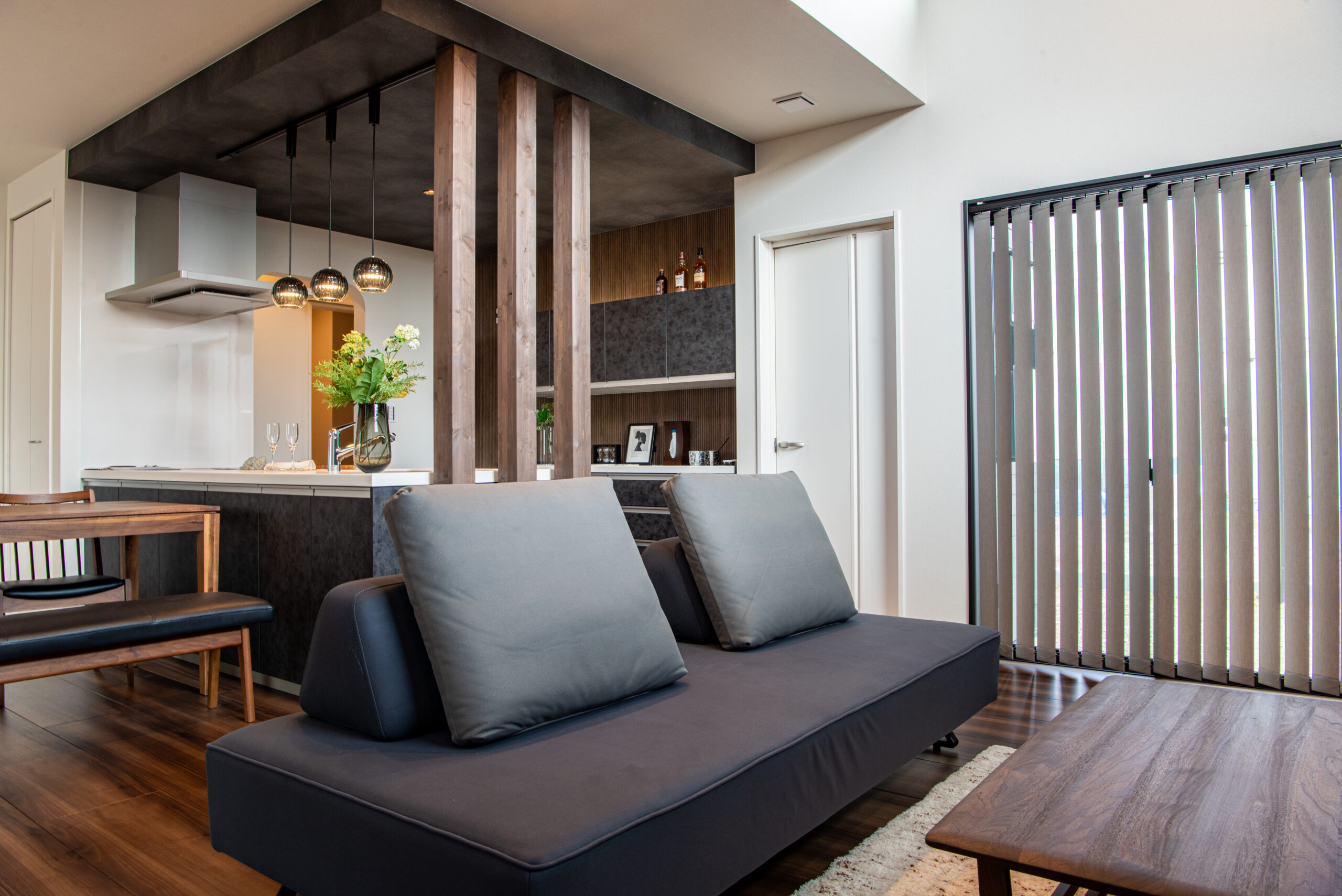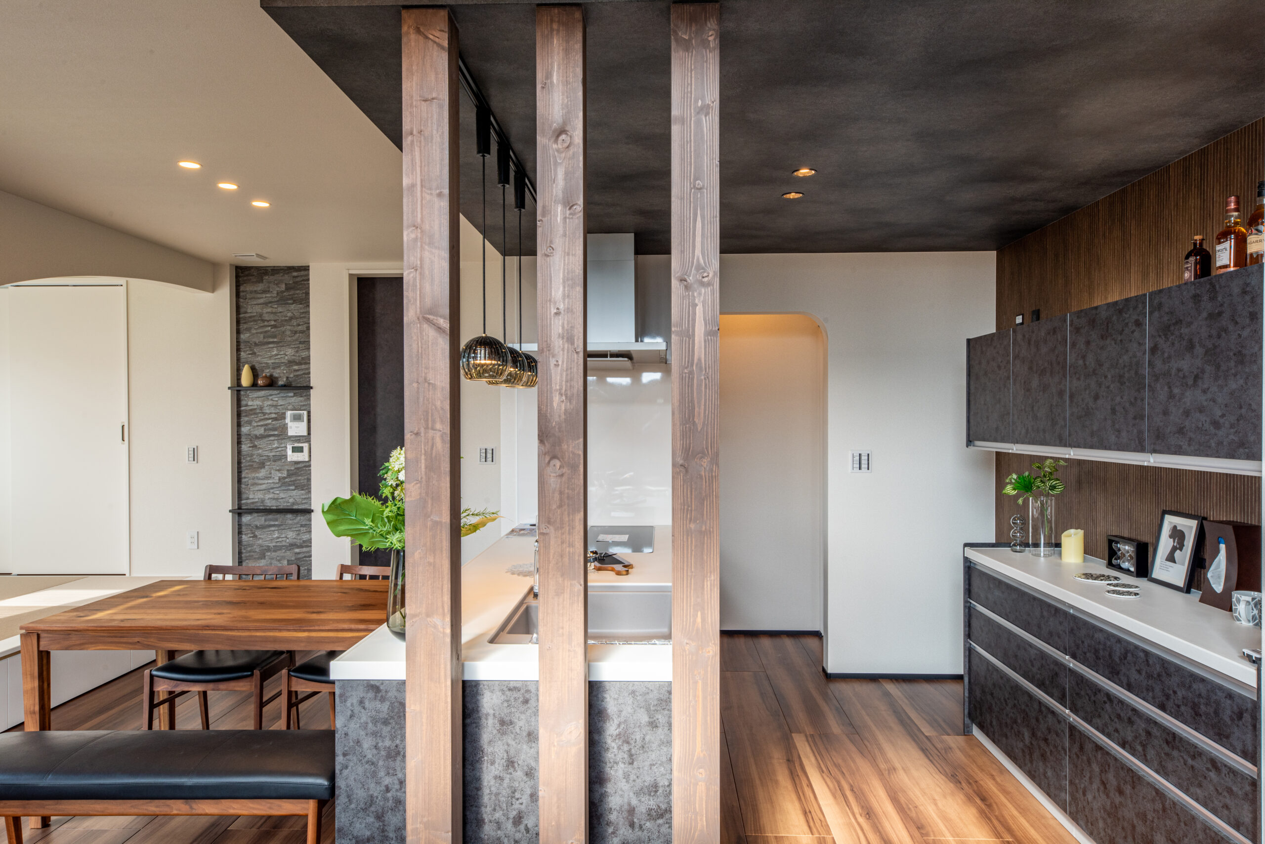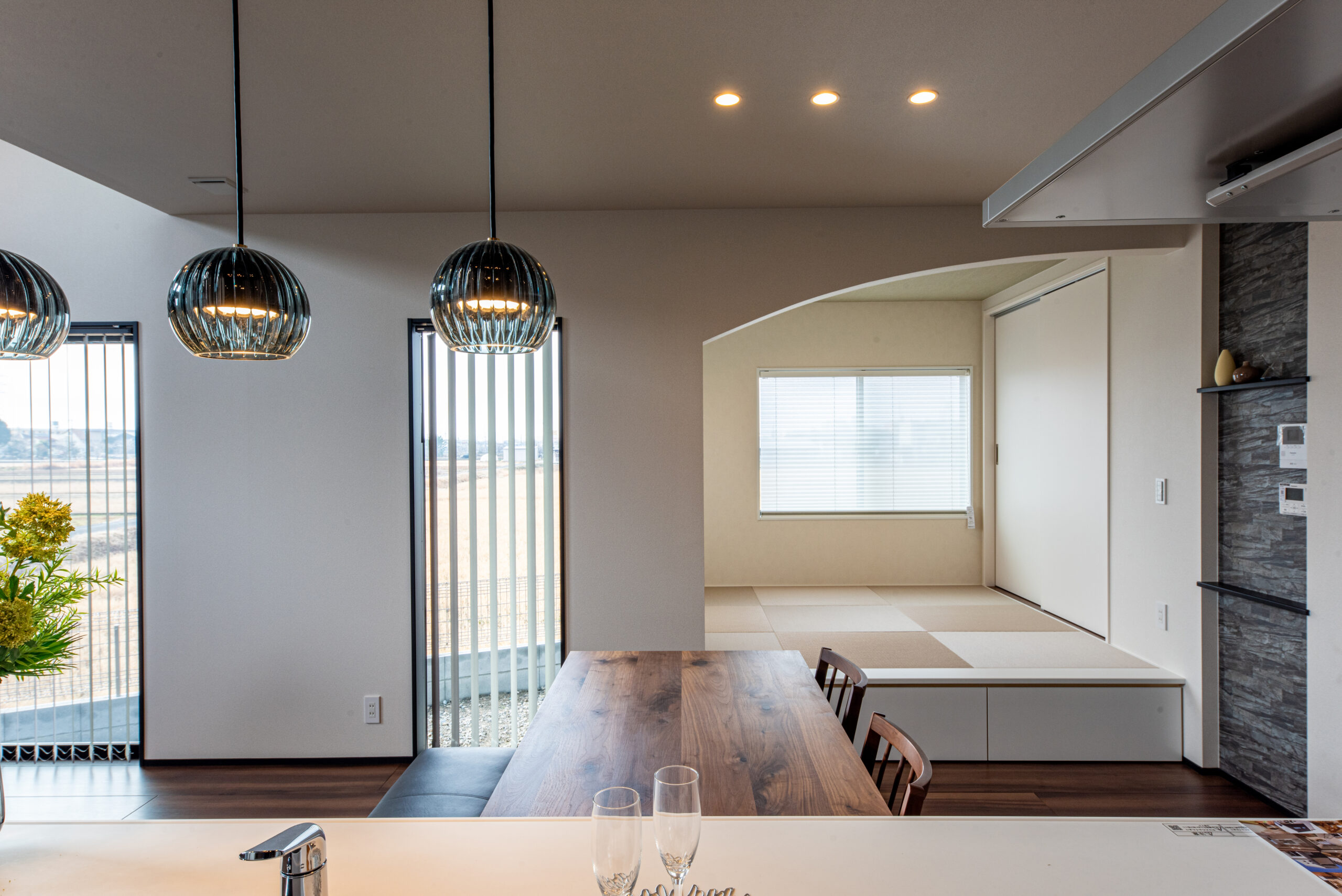スタイリッシュなリビングとヌックのように和室を楽しむ家 近江八幡市